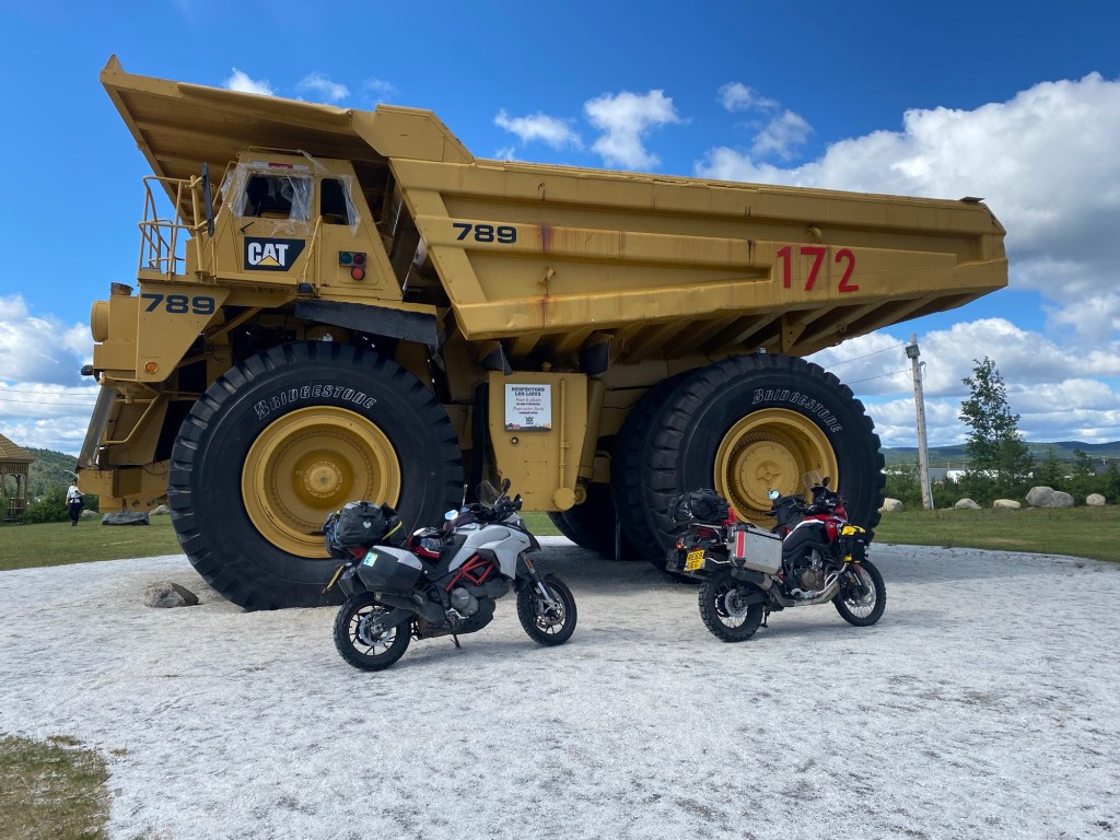 Labrador City had nothing for us other than petrol. We knew there was a campsite 25km further on at Fermont, the road now heading southwards. Fermont is a town built to house workers at the nearby mine, a source of high quality iron ore. Temperatures there drop below freezing in seven months of the year – thankfully not in June. It gets so cold, the town is built to be entirely indoors, so residents never have to venture outside in winter. One long building several stories high, it also serves to shelter other residents and businesses from the harsh winds and snow.